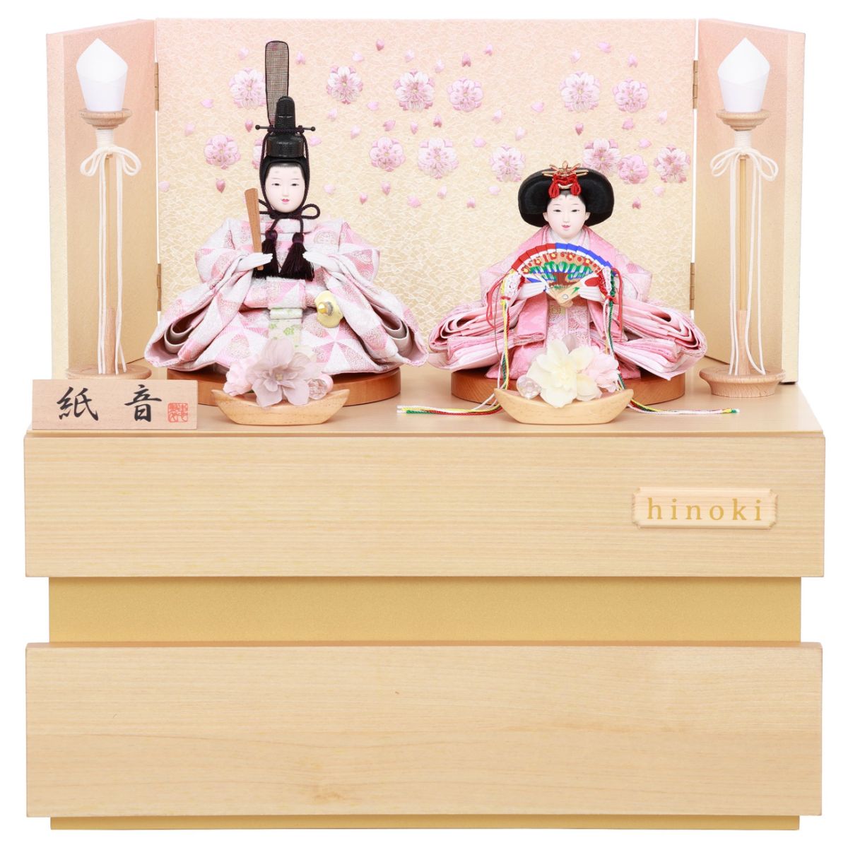 男雛と女雛の二人で飾るオーソドックスなセット。下台はお人形や道具類がしまえる収納箱タイプ。高さを上げて豪華に飾れるのもポイントです。