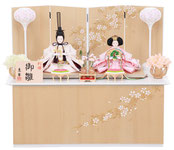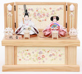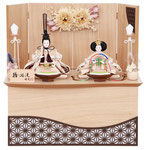雛道具:屏風 二曲花梨(麻の葉)、燭台 やよい21cmコードレス(モカ)1本入、桜橘 洋花No.1、菱三宝 (焦茶)彩15、収納 花梨43
