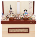 男雛と女雛の二人で飾るオーソドックスなセット。下台はお人形や道具類がしまえる収納箱タイプ。高さを上げて豪華に飾れるのもポイントです。