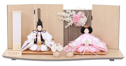 ひな人形 親王飾りケース入 小芥子2人 花飾り付 四角 ホワイトオーク(S3384)