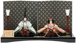 ひな人形 親王飾りケース入 花小町 芥子二人 黒塗パノラマ(№203)