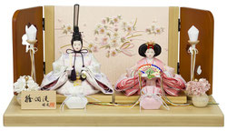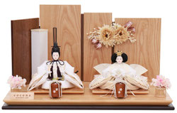 ひな人形 親王飾りケース入 小三五2人 丸格子に花付 四角 ホワイトオーク(S3394)