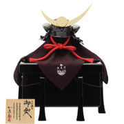 鞆美作「兜」は兜と櫃のみで飾るシンプルな兜飾りです。近年、マンションや現代様式の住宅が増えるにつれ兜単品で飾るご要望も多くなっております。最大のメリットは横幅40cm程のスペースで甲冑師「加藤鞆美」が制作した本格的な兜を飾れる点。弓太刀や屏風は翌年以降に買い足すこともできます。