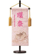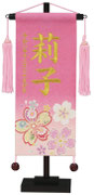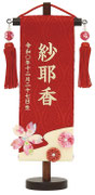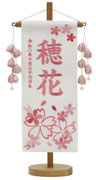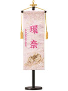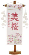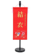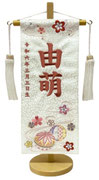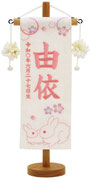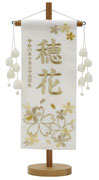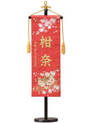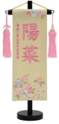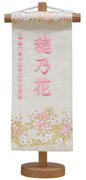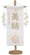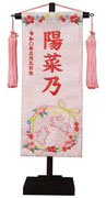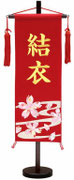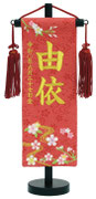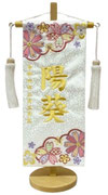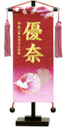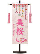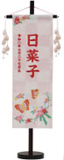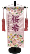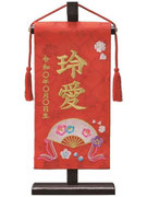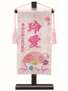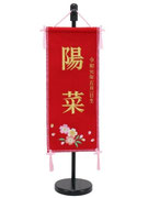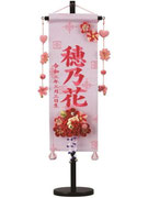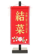 名前旗は織物やフェルト地などにお名前や生年月日を刺繍で入れた高級感のある旗飾りです。ひな人形の横に添えることで桃の節句を一層華やかに演出します。