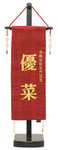 名前旗は織物やフェルト地などにお名前や生年月日を高級感のある刺繍で入れた旗飾りです。羽子板やひな人形と一緒にお飾りできるスタンド付き。縁起物や季節の題材とともに桃の節句を一層賑やかに演出します。