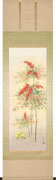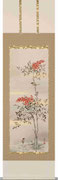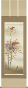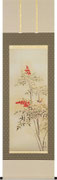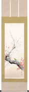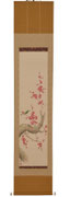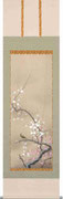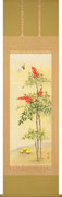 冬に掛ける題材は、厄除けの「南天」や縁起の良い「紅白梅」がおすすめです。数ある花々の中でも年明け最初に花を咲かせる梅は、厳寒の中においても見事に花を咲かせることから忍耐強さと大願成就に繋がるといわれています。梅には鶯が定番で、春の訪れを感じさせる縁起図です。