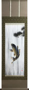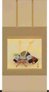5月5日の端午の節句(菖蒲の節句)には、男の子が健やかにたくましく成長することを願って五月人形や鯉のぼりを飾ります。床の間には兜飾りとともに、鯉の滝登り・武者・菖蒲といった掛軸を飾り立身出世や厄除けを願います。