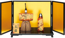 立雛飾りは立姿の男雛と女雛が並ぶスタイルのひな人形です。基本的に雛道具は置かず屏風と飾り台のみ。お人形を引き立てるシンプルなセットを中心にご用意しております。