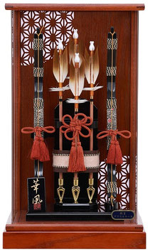 破魔弓は読んで字のごとく弓矢に魔除けの想いが込められたお守りです。現在のように装飾品として飾るようになったのは鎌倉時代、武家や町人の間に男児の初正月の祝いに破魔弓を贈る習慣が生まれました。弓には邪悪を払う力があると考えられ、真っ直ぐな矢には男の子に雄々しく育てとの願いが込められています。男の子の健やかな成長を願い、初正月から飾ります。