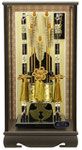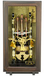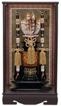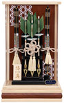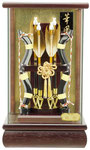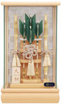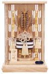 ケースに使用されている鉄刀木(たがやさん)は床柱をはじめ様々な工芸品に用いられており、黒檀・紫檀に並ぶ唐木の銘木。波紋のような独特の木目を持つ重硬で耐久性の高い高級材です。正面左右の枠が無いパノラマケースですので、スッキリとしたイメージでお飾りいただけるコンパクトながらも上級の破魔弓です。