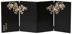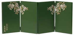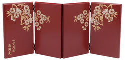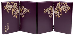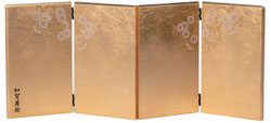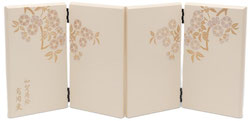 二曲一双は二曲の屏風を2枚並べて飾ります。塗や箔の上に加賀蒔絵で桜をあしらっており、カラーラインナップは7種類。尾形光琳をモチーフにした桜が咲き誇る柔らかな風合いの屏風です。