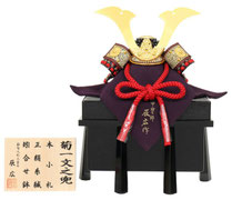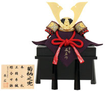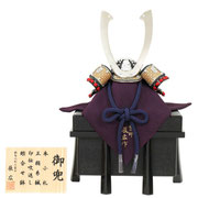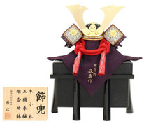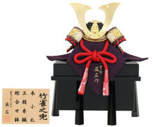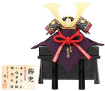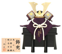 辰広作「兜1/5」は兜と櫃のみで飾るシンプルな兜飾り。横幅30cm以内で本格的な兜をお飾りいただけます。近年、マンションや現代様式の住宅が増えるにつれ兜単品で飾るご要望も多くなっており、弓太刀や屏風は単品で買い足すこともできます。